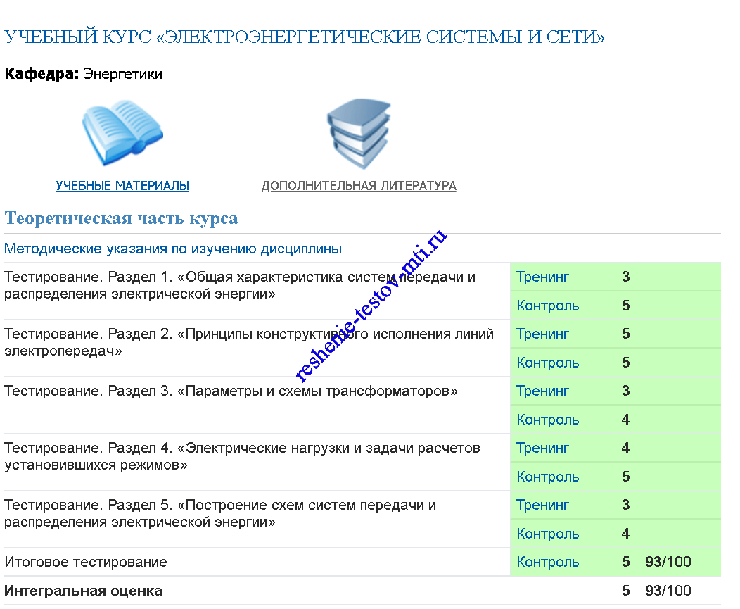 Тестирование. Раздел 1. «Общая характеристика систем передачи и распределения электрической энергии»